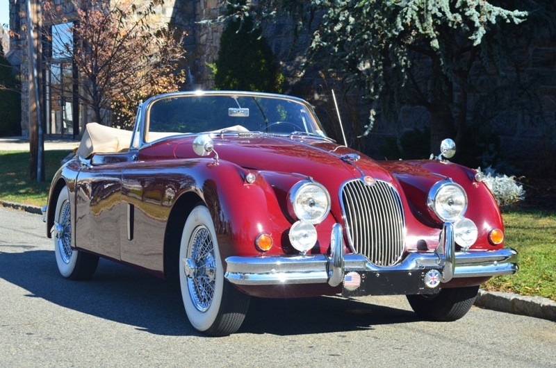 1958 Jaguar XK150 Drophead Convertible burgundy with tan interior. This car is in excellent condition and is mechanically very sound.