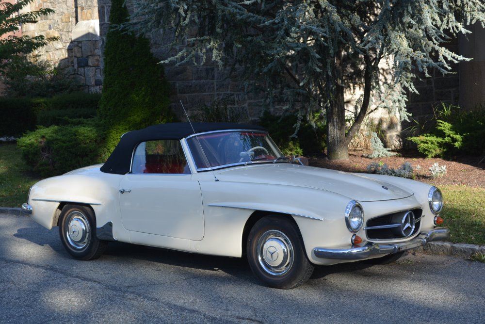 This 1960 Mercedes 190SL is a superb driver wearing a quality older restoration. White with red interior and 2 tops. A very clean, straight, and solid car overall. An excellent buy at just